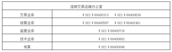 自模拟交易起,我所连续交易运维办公室正式启用。连续交易运维办公室职责是在连续交易时段负责交易、结算、监查、技术等各项业务的正常运营。连续交易时段内相关业务可致电专线电话: