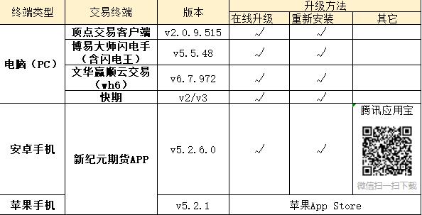 为配合看穿式监管的全面实施,我公司交易终端已经全部升级完成。请您务必于6月13日夜盘前完成交易终端的升级。