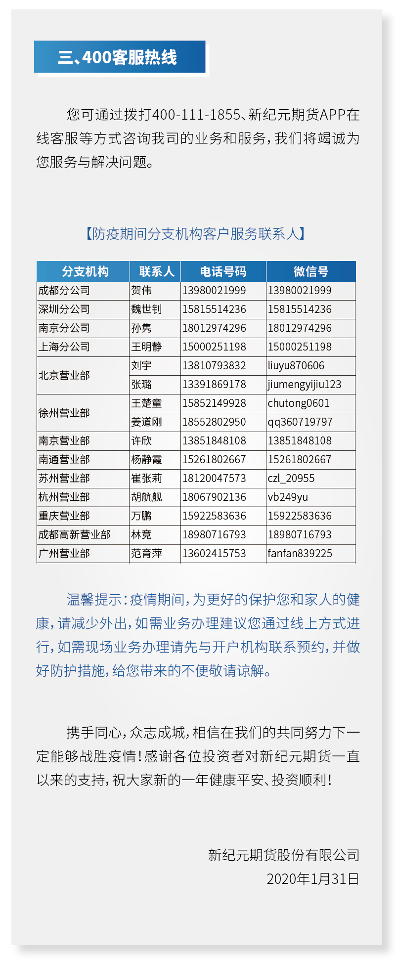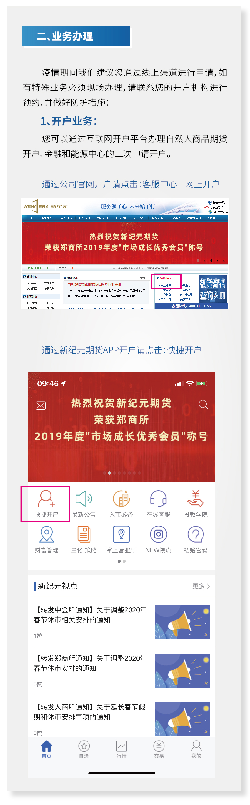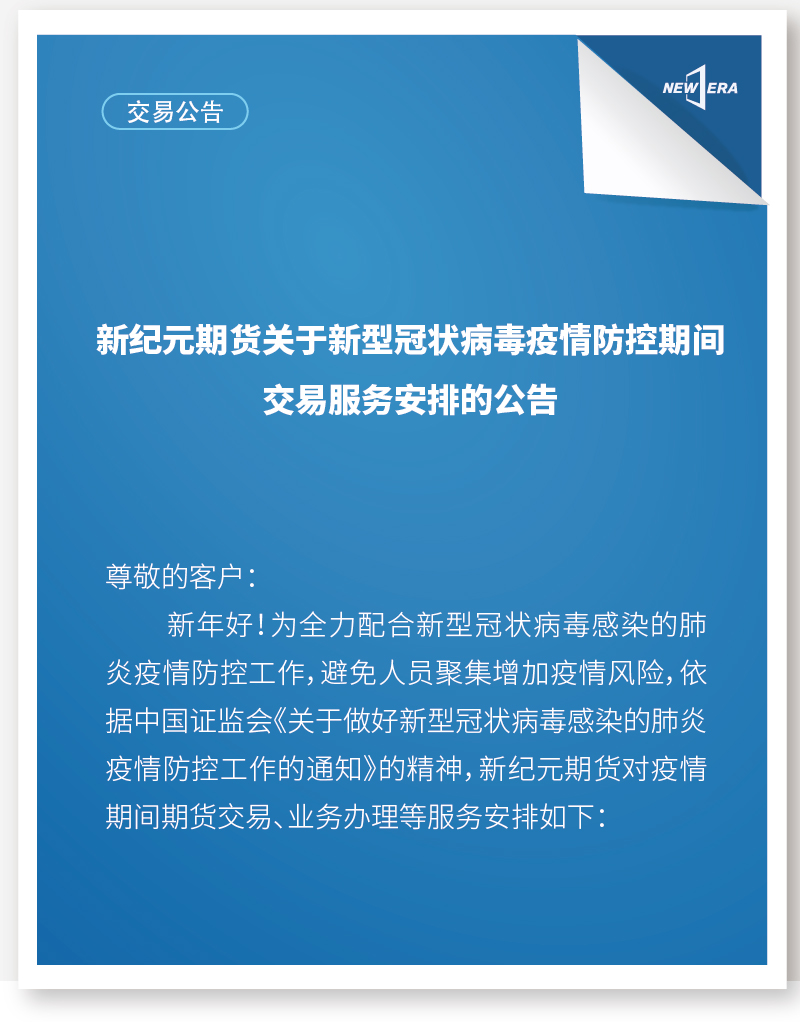 新纪元期货关于新型冠状病毒疫情防控期间交易服务安排的公告