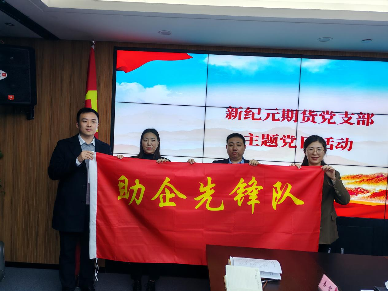 活动首先由公司党支部书记向“助企先锋队”队员代表授旗。“助企先锋队”由公司业务服务岗党员组成,队员们将深入调研产业客户,为企业提供套期保值方案、市场分析与期货培训等服务,助力企业有效应对市场价格波动风险,稳定企业生产经营。