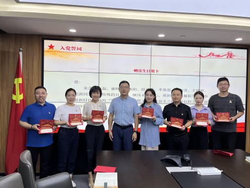 活动首先为公司党支部上半年入党的党员同志集体过“政治生日”。全体党员在党支部书记的带领下重温入党誓词,面对鲜红党旗,高擎右拳,重温曾经许下的庄严宣誓,时刻提醒自己不忘光荣使命、不负神圣职责,再次感悟红色初心,汲取奋进力量。随后,党支部书记为党员赠送政治生日贺卡,并对在场的党员同志送上殷切寄语,勉励全体党员要牢记入党初心、敢于担当、立足岗位,主动适应新时代新要求,不断提升工作本领,围绕公司的发展目标,奋发进取,敢为善为。
