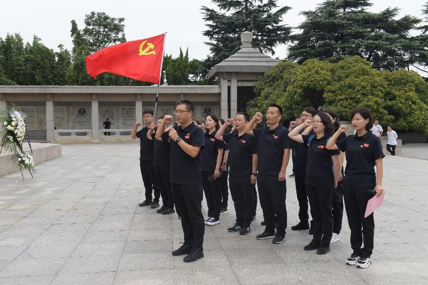 在庄严肃穆的淮海战役烈士纪念塔前,全体人员向革命先烈们敬献花篮,并默哀三分钟,党员代表宣读纪念塔铭文,聆听历史回音,追溯辉煌军史。在党支部书记带领下,全体党员面向党旗和烈士纪念塔,举起右手庄严宣誓,重温入党誓词,感悟入党初心。