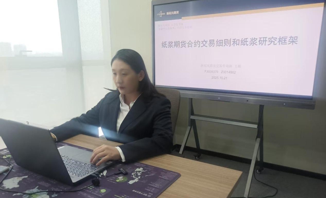 接着,新纪元期货交易咨询部分析师王晨围绕“纸浆期货合约交易细则和纸浆研究框架”进行分享。课程以“知规则、观供需、识风险”为主线,系统阐释纸浆期货的制度设计与研究框架。会中,王晨讲师介绍合约细则,解读漂针浆交割标的、品牌范围及仓单规则;着重介绍国内纸浆的价格影响因素、成本因素、供给需求和库存因素,深入浅出的分析“限塑令”与“禁废令”以及这两项政策对于纸浆供求的影响。