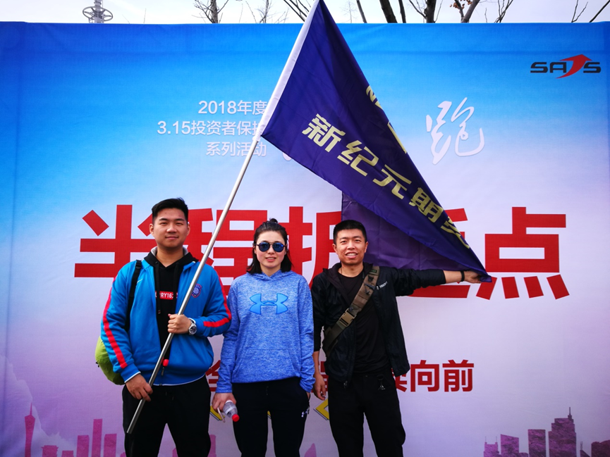 在南京的证券、期货经营机构、上市公司、私募基金管理人等近百家单位约一千人共同参加了活动。长江夹江东岸边健身步道上,一时间彩旗招展,各证券、期货、基金公司的选手举着代表自己公司的旗帜,在现场大多数是红色的旗帜中,新纪元独特的上缀金字LOGO的蓝色旗帜非常独树一帜。长江岸边,美景处处,早春的鲜花竞相开放,为这次慢跑活动点缀着点点色彩。