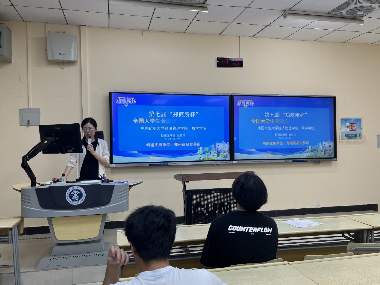 为进一步普及期货市场基本知识,提高学生的专业知识水平和实际操作能力,2024年6月19日,新纪元期货股份有限公司联合中国矿业大学经济管理学院和数学学院于博四B103成功举办第七届“郑商所杯”全国大学生金融模拟交易大赛(以下简称“郑商所杯”)宣讲会。