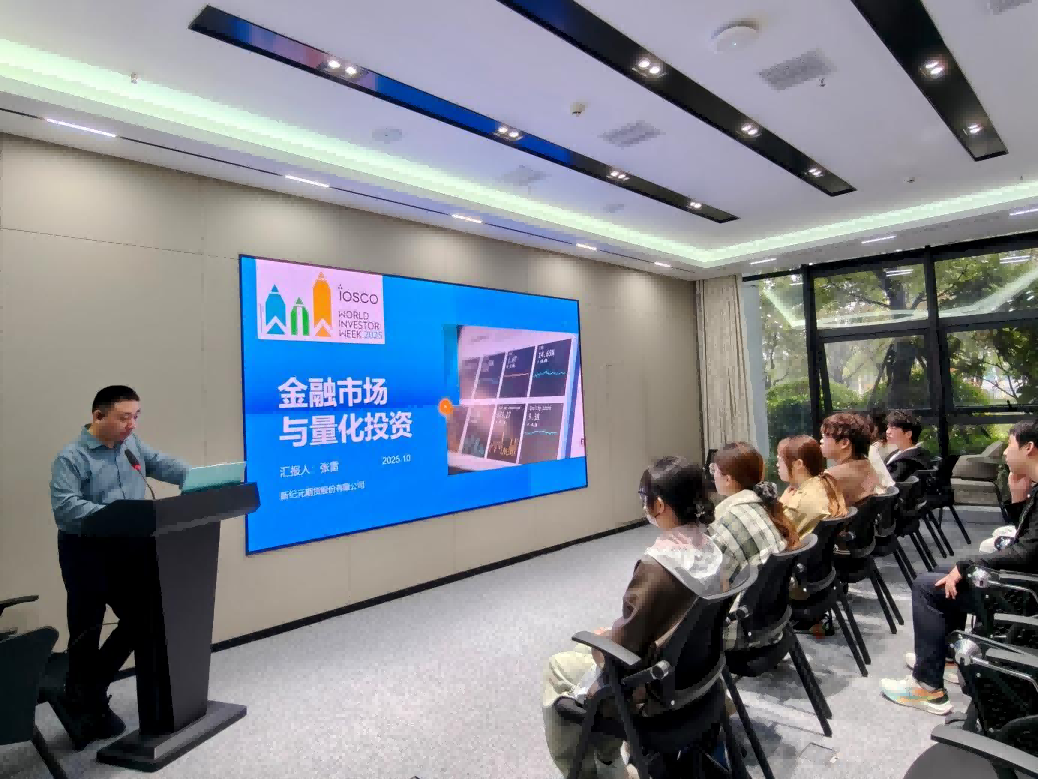 活动中,新纪元期货公司互联网金融部经理张雷结合自身专业背景与多年从业经验,开展了以“金融市场与量化投资”为主题的专题培训,培训内容涵盖了期货市场基本概念、交易品种及核心风险管理方法。张雷重点强调了期货作为风险管理工具的核心价值,既为实体企业规避价格波动风险提供支撑,这也是统计学方法的重要应用场景,让学生直观感受到专业知识在金融实务中的落地价值。