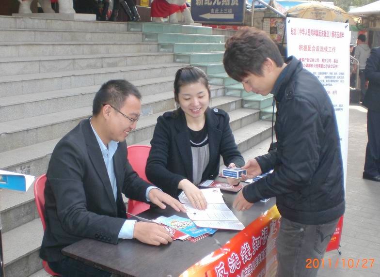 今年是《中华人民共和国反洗钱法》颁布五周年。为进一步提高营业部从业人员反洗钱工作的业务素质,增强社会公众反洗钱意识,南京营业部根据人民银行反洗钱部门的统一布置,经过精心组织和准备,于2011年10月份开展了一系列反洗钱宣传活动。通过多种形式活动的举办,收到了良好的宣传效果。