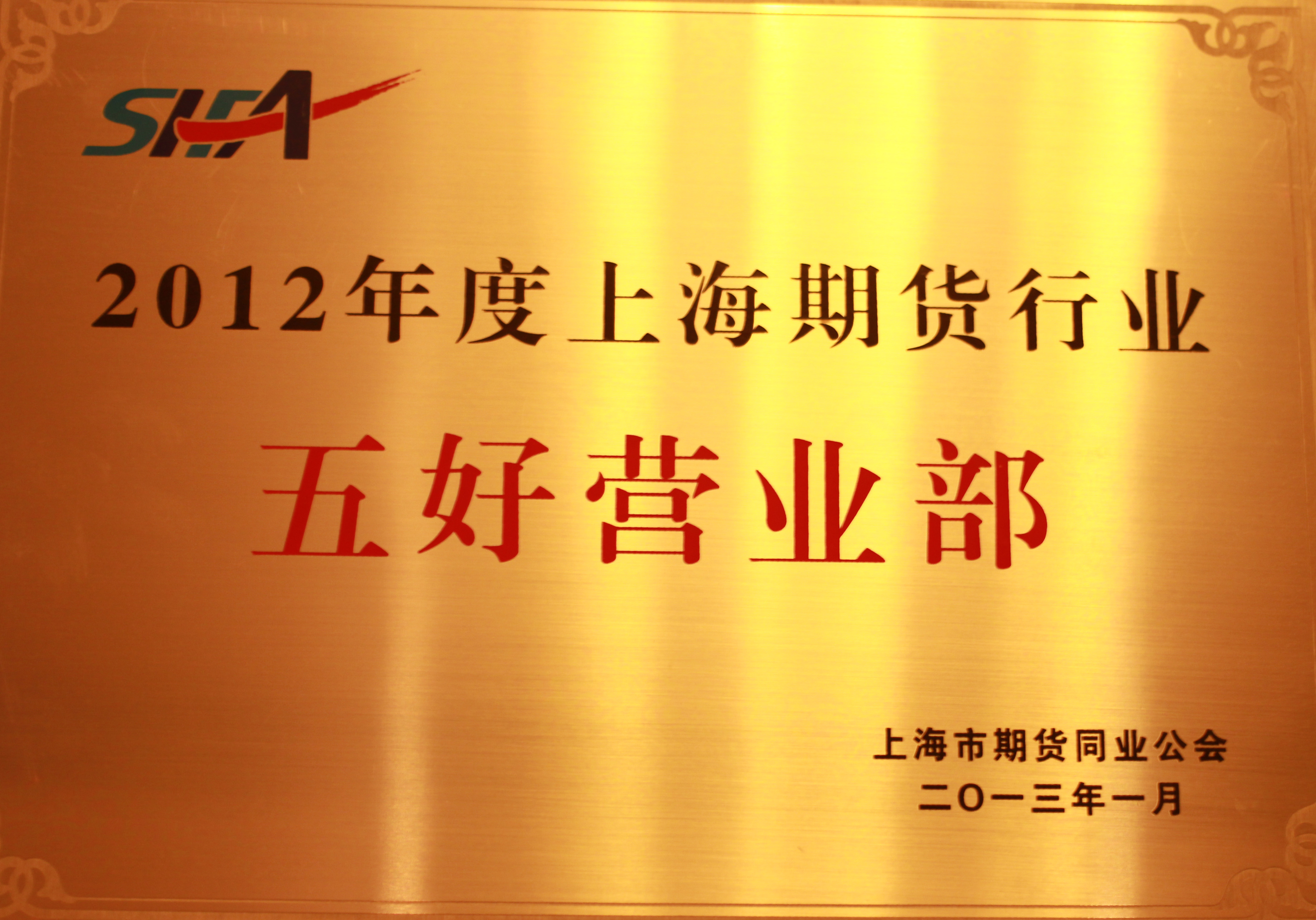 由上海市期货同业公会主办的“2012年度上海期货行业五好营业部”,新纪元期货上海营业部喜获“2012年度上海期货行业五好营业部”殊荣。