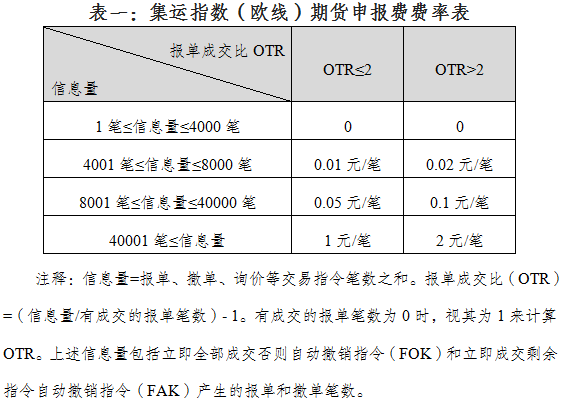 集运指数(欧线)期货各合约的申报费费率标准如下。