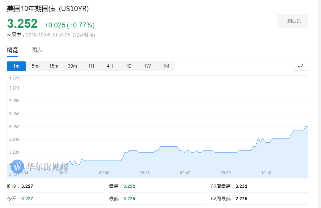 周二亚市早盘,美国30年期国债收益率触及3.4302%,再度创新四年最高位。10年期美债收益率升至3.252%,刷新七年新高。昨日美债市场因哥伦布日休市一天。