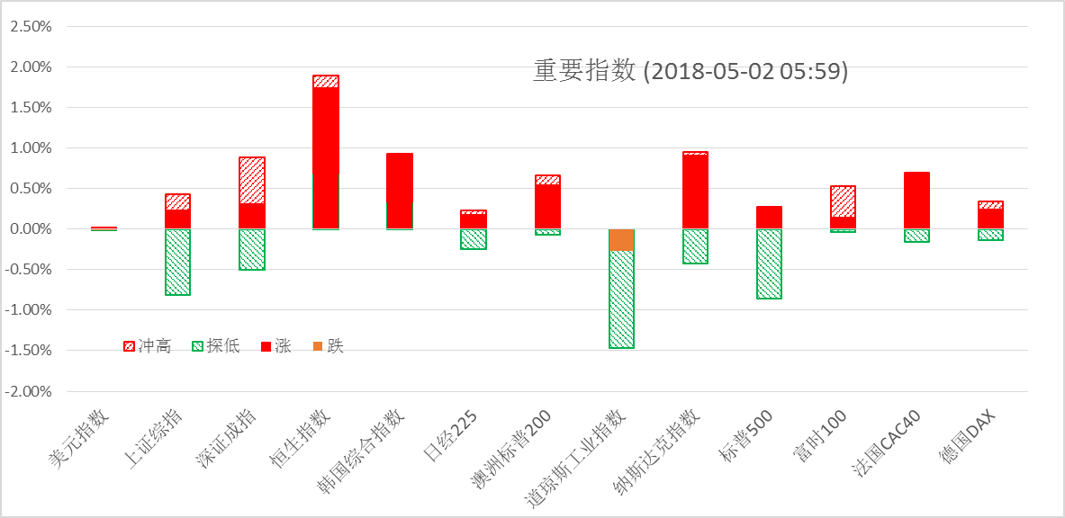 周二夜间,标普涨0.25%;道指跌0.27%;美元指数涨0.70%;伦铜跌0.87%;原油跌1.26%;黄金跌1.11%。美豆涨0.26%;美豆粉涨2.67%;美豆油跌0.78%;美糖跌0.43%;美棉涨0.82%;CRB指数涨0.22%;离岸人民币CNH涨0.35%报6.3380。