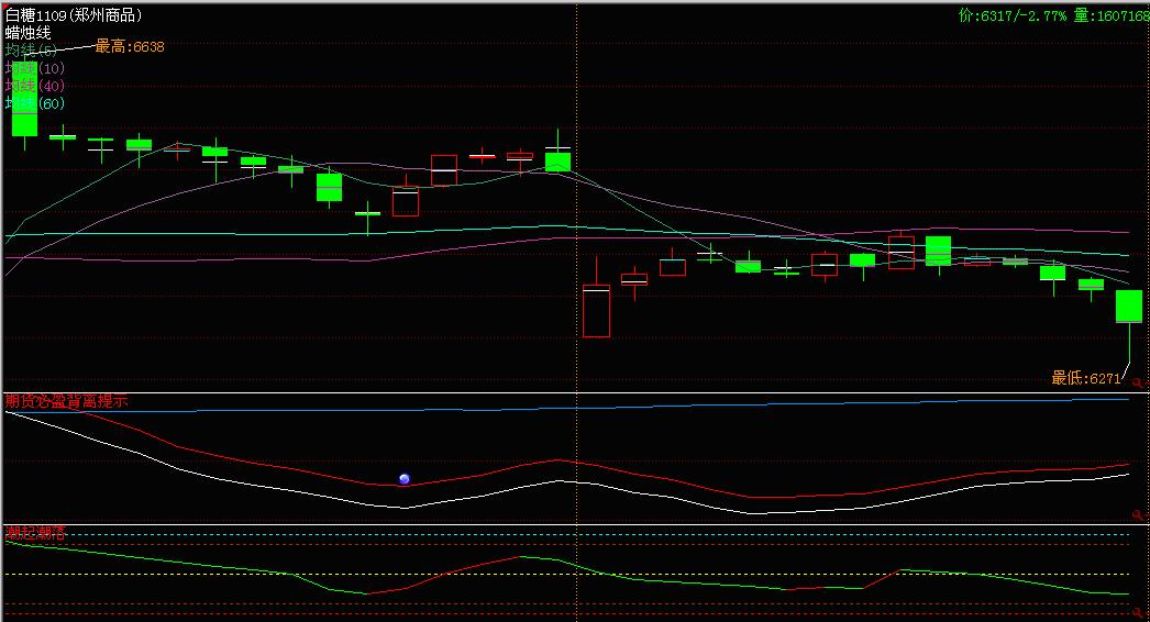 今日郑糖主力合约如期低开于40日均线之下,开盘后即展开反弹走势,盘间摸高6429,适逢上周五低点及5日、40日均线粘合位压力遇阻窄幅盘整,多头攻破压力位发力信心受挫,尾盘半小时日内投机资金集中抽离,量能锐减,期间应声急落60余点,日线报收上影小实体星线,日内跌幅3.01%;主力合约成交量约160万手,较上周五略有萎缩,持仓量继续保持在45万手附近的相对低位,成交持仓比较一周前显著回落,资金热情减退。