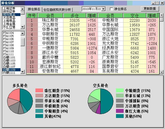 图2 2010.11.22白糖1109合约持仓情况