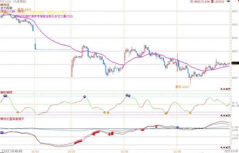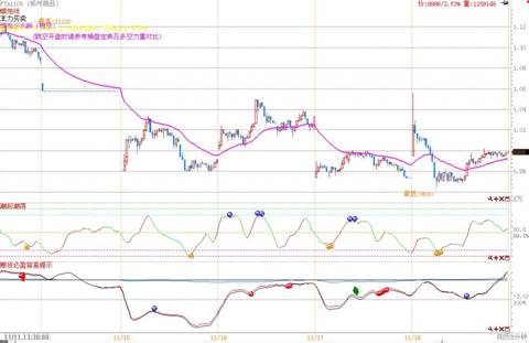 塑料5分钟必盈三线自11月17日起持续走高,连续两日与弱势市场发生背离,显示主力资金追空意愿减弱,最终在18日下午穿越零轴,自高点回落以来首次摆脱0轴下方运行的弱势格局,资金由出场转为进场,预示后市整体走强,但潮起潮落始终处于相对高位,没有给出较好进场信号,目前保持偏强思维,空头应当离场,积极寻找并耐心等待潮起潮落低点的出现。