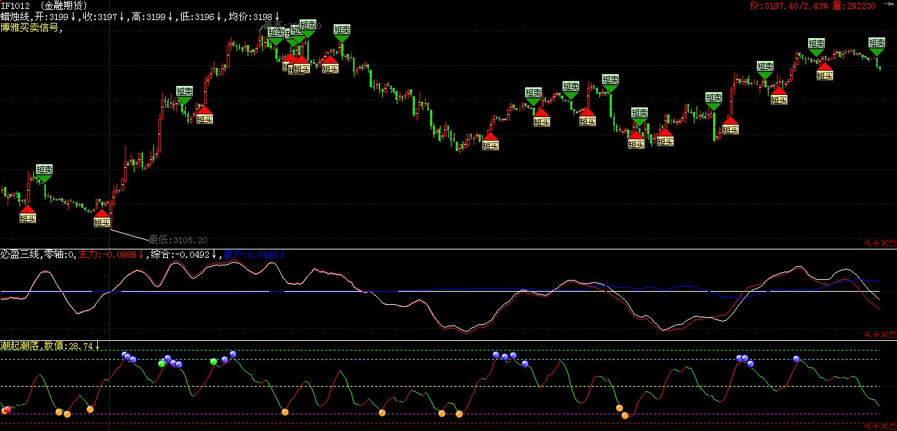 IF1012 一分钟K线 必盈三线 潮起潮落