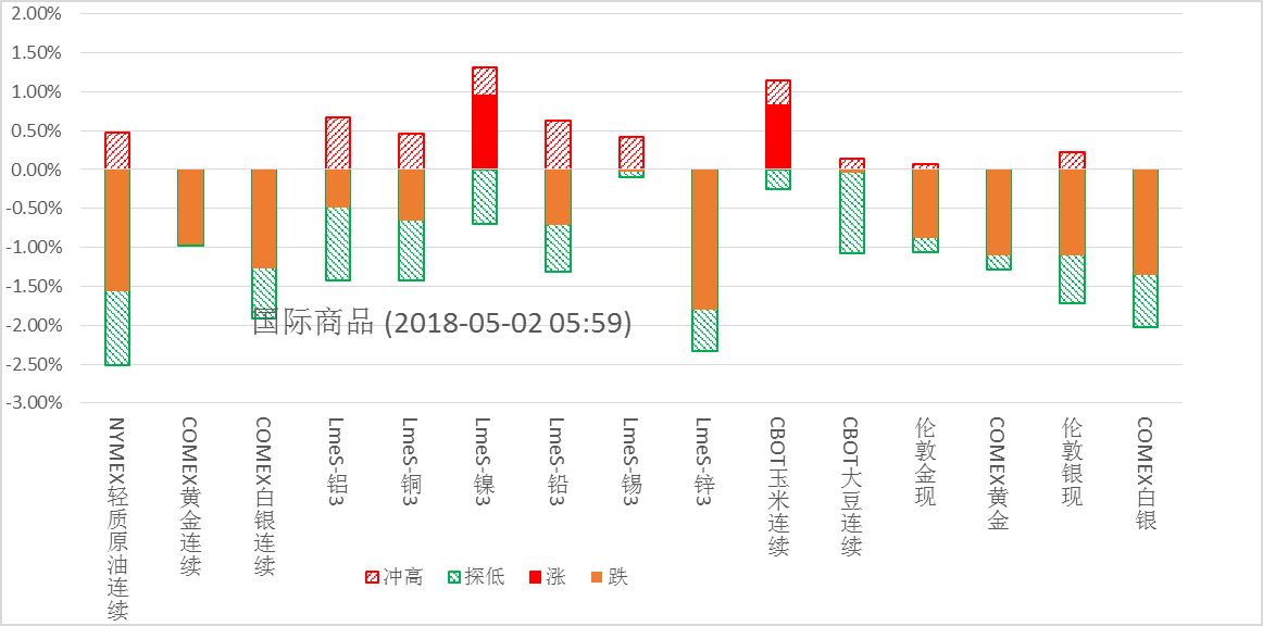 周二夜间,标普涨0.25%;道指跌0.27%;美元指数涨0.70%;伦铜跌0.87%;原油跌1.26%;黄金跌1.11%。美豆涨0.26%;美豆粉涨2.67%;美豆油跌0.78%;美糖跌0.43%;美棉涨0.82%;CRB指数涨0.22%;离岸人民币CNH涨0.35%报6.3380。