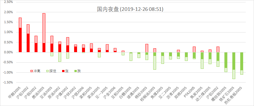 总结:欧美主要市场圣诞假日休市。国内因交易所结算延迟,夜盘交易推迟,有色金属领涨夜盘,黑色系板块领跌,油强粕弱的市场结构鲜明。