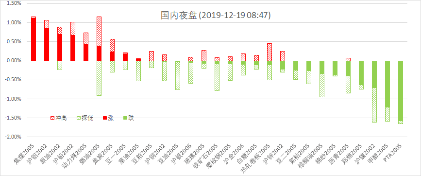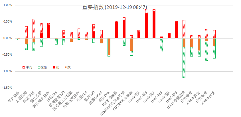12月18日周三,美股标普500指数跌0.04%;欧洲Stoxx50指数跌0.04%;美元指数涨0.15%;WTI原油涨0.55%;Brent原油涨0.55%;伦铜跌0.05%;黄金跌0.07%。美豆跌0.04%;美豆粕涨0.26%;美豆油跌1.30%;美糖涨1.13%;美棉涨0.48%;CRB指数跌0.18%,BDI指数跌4.68%。离岸人民币CNH贬0.02%报7.0006;焦炭涨0.24%,铁矿石跌0.08%,螺纹钢跌0.09%。