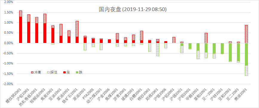 11月28日周四夜盘,感恩节美国市场休市,欧洲Stoxx50指数跌0.26%;美元指数跌0.06%;WTI原油涨0.17%;Brent原油涨0.30%;伦铜跌0.99%;黄金涨0.08%;BDI指数涨1.88%。离岸人民币CNH贬0.26%报7.0318;焦炭涨0.73%,螺纹钢涨1.28%,铁矿涨0.31%,国内原油涨0.28%。