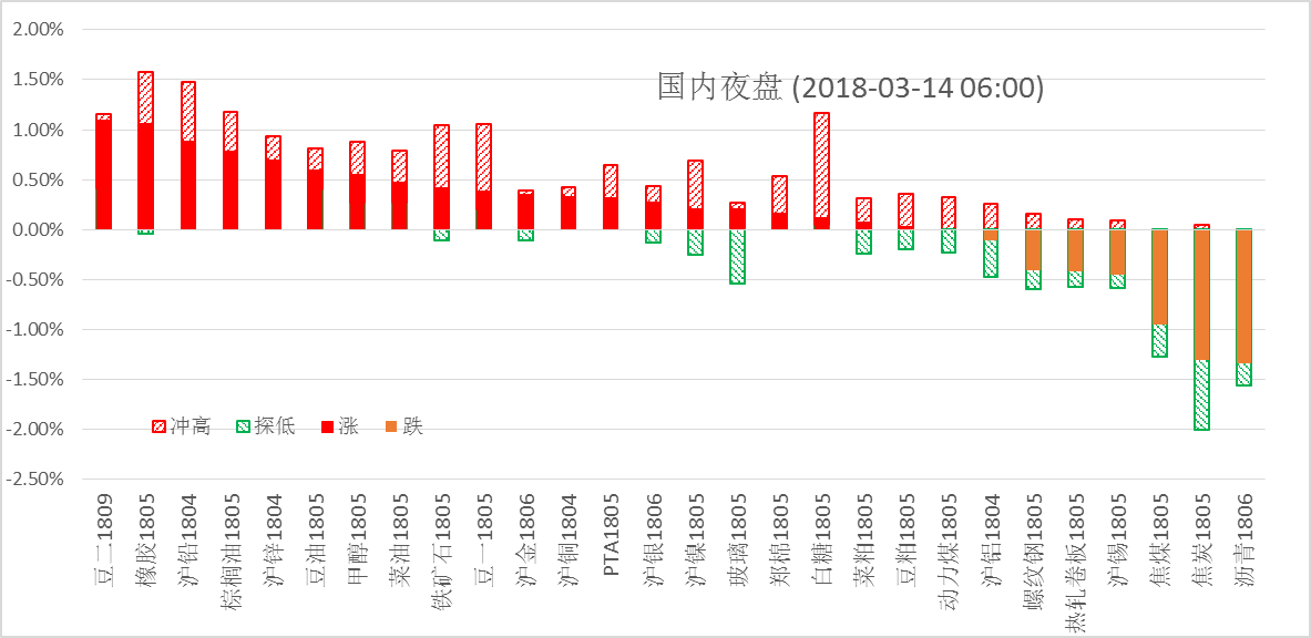 周二夜间,美股收低;标普跌0.64%;道指跌0.68%;欧洲Stoxx50指数跌1.11%;美元指数跌0.22%;伦铜涨0.541%;原油跌0.86%;黄金涨0.25%。美豆涨0.65%;美豆粉涨1.54%;美豆油涨1.45%;美糖跌2.23%;美棉跌0.13%。高盛商品指数跌0.23%;CRB指数跌0.12%;BDI指数跌1.09%。离岸人民币CNH跌0.03%报6.3269;德银X-Trackers嘉实沪深300中国A股ETF跌1.96%。