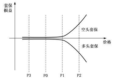 进行套期保值以后,空头套保的损益曲线类似于持有一个看跌期权的多头,多头套保的损益曲线类似于持有一个看跌期权的空头。