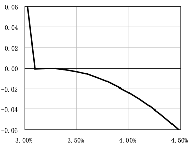 图9 放大3%~4.5%之间的损益曲线