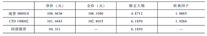 假设当前所有国债的到期收益率都是3.2%,则国债100002是当时的CTD。我们进行期货空头套保,国债现货使用国债080010。各现货与期货的价格如图5所示。
