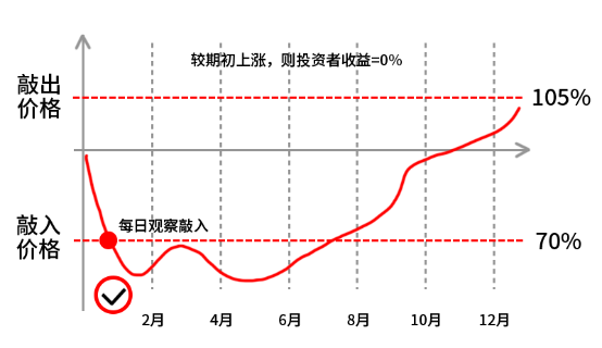 损益情形四、触发敲入事件未触发敲出事件。假设中证500指数在第1个月某个观察日下跌至4880点,低于4900点敲入价格,触发了敲入事件。此后直至产品期满都没有触发敲出事件,则有两种情形: