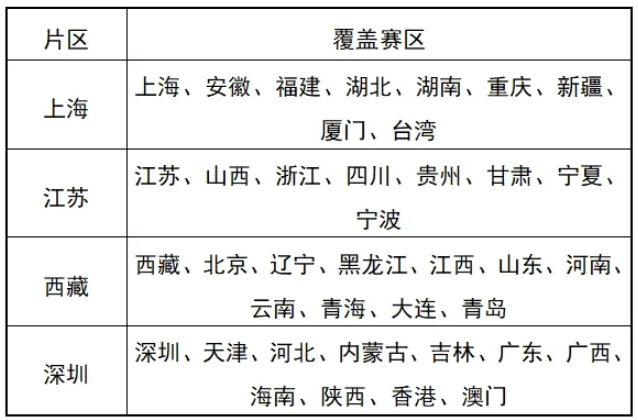 二、本次答题活动分设上海、江苏、西藏、深圳四大片区,覆盖全国36赛区及港澳台地区,片区及赛区划分如下:
