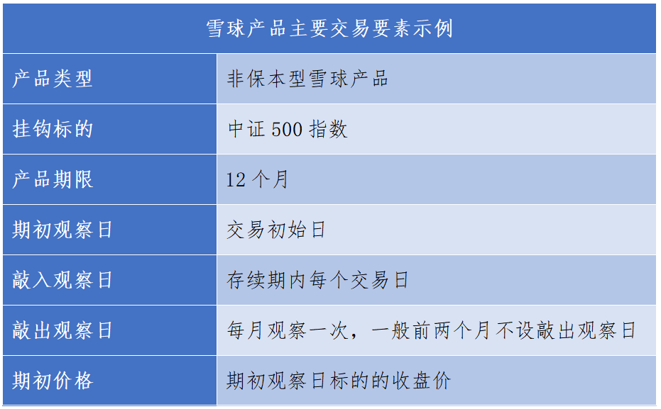 投资者在选择雪球产品时,应当特别注意雪球产品的各项交易要素,这些要素直都接影响着投资者获得预期收益的概率。雪球产品主要包括以下交易要素: