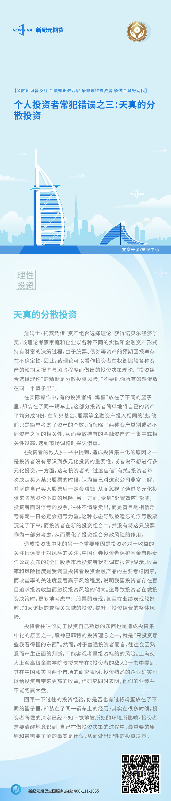 【金融知识普及月】个人投资者常犯错误之三:天真的分散投资