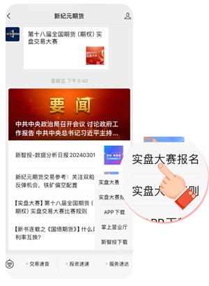 方法二:关注新纪元期货订阅号,底部菜单栏找到实盘大赛报名,点击报名入口。